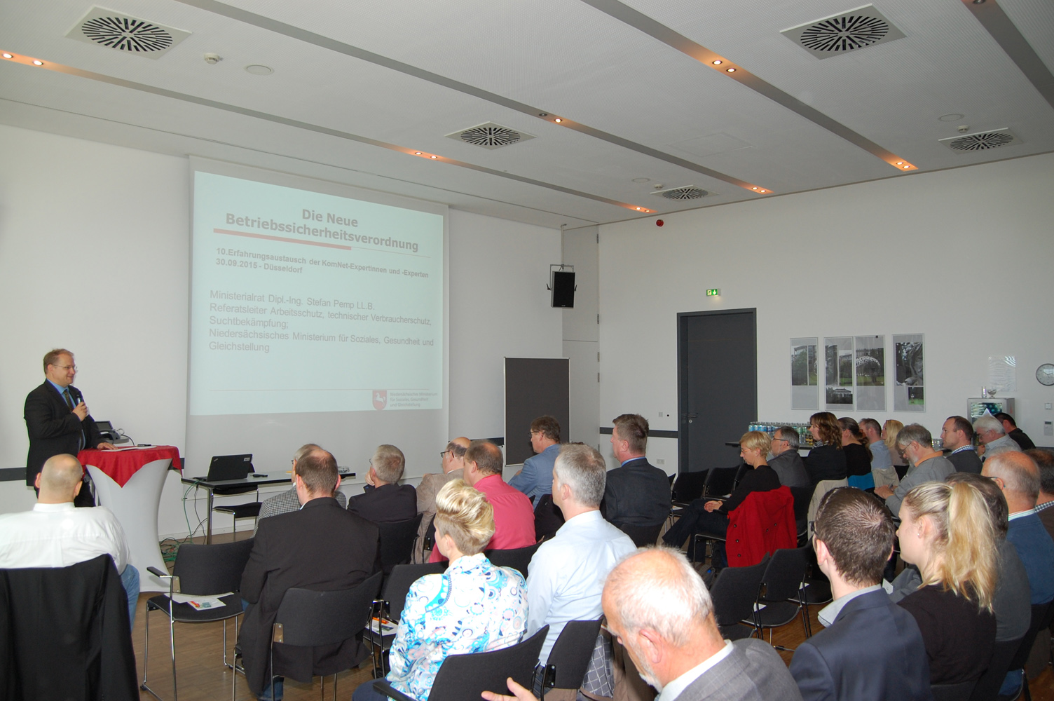 MR Stefan Pemp vom Niedersächsischen Sozialministerium stellte die Entwicklung der Betriebssicherheitsverordnung vor und diskutierte widersprüchliche Aspekte beim Werdegang dieser Rechtsnorm.