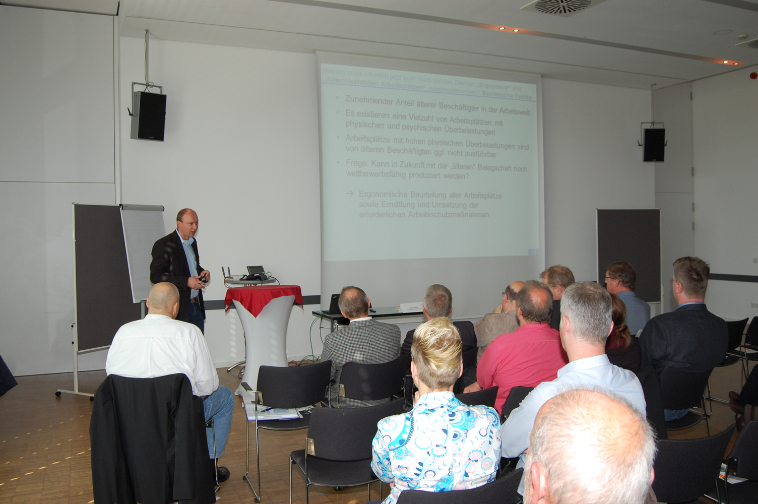 Dr.-Ing. Andr� Klußmann vom Institut ASER e.V. (Wuppertal) zeigte im Betrieb praktisch umsetzbare Lösungsansätze zur ergonomischen sowie alters- und alternsgerechten Arbeitsgestaltung auf.