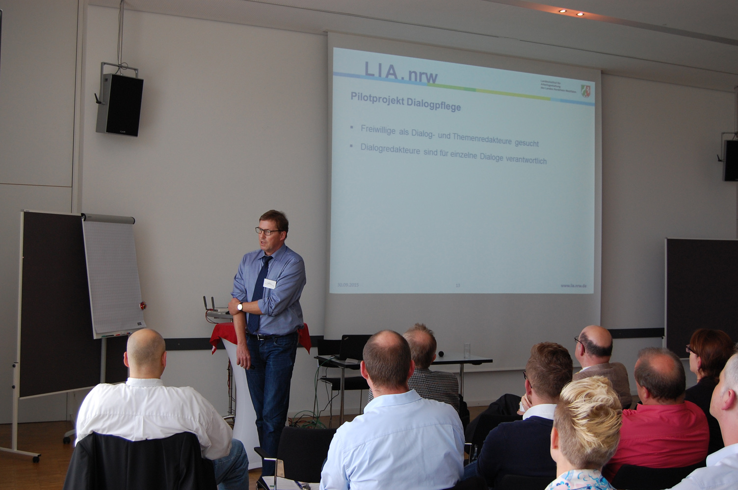 Dipl.-Ing. Steffen Röddecke vom Ministerium für Arbeit, Integration und Soziales des Landes Nordrhein-Westfalen eröffnete die 10. KomNet-Jahrestagung am 30. September 2015 in Düsseldorf.