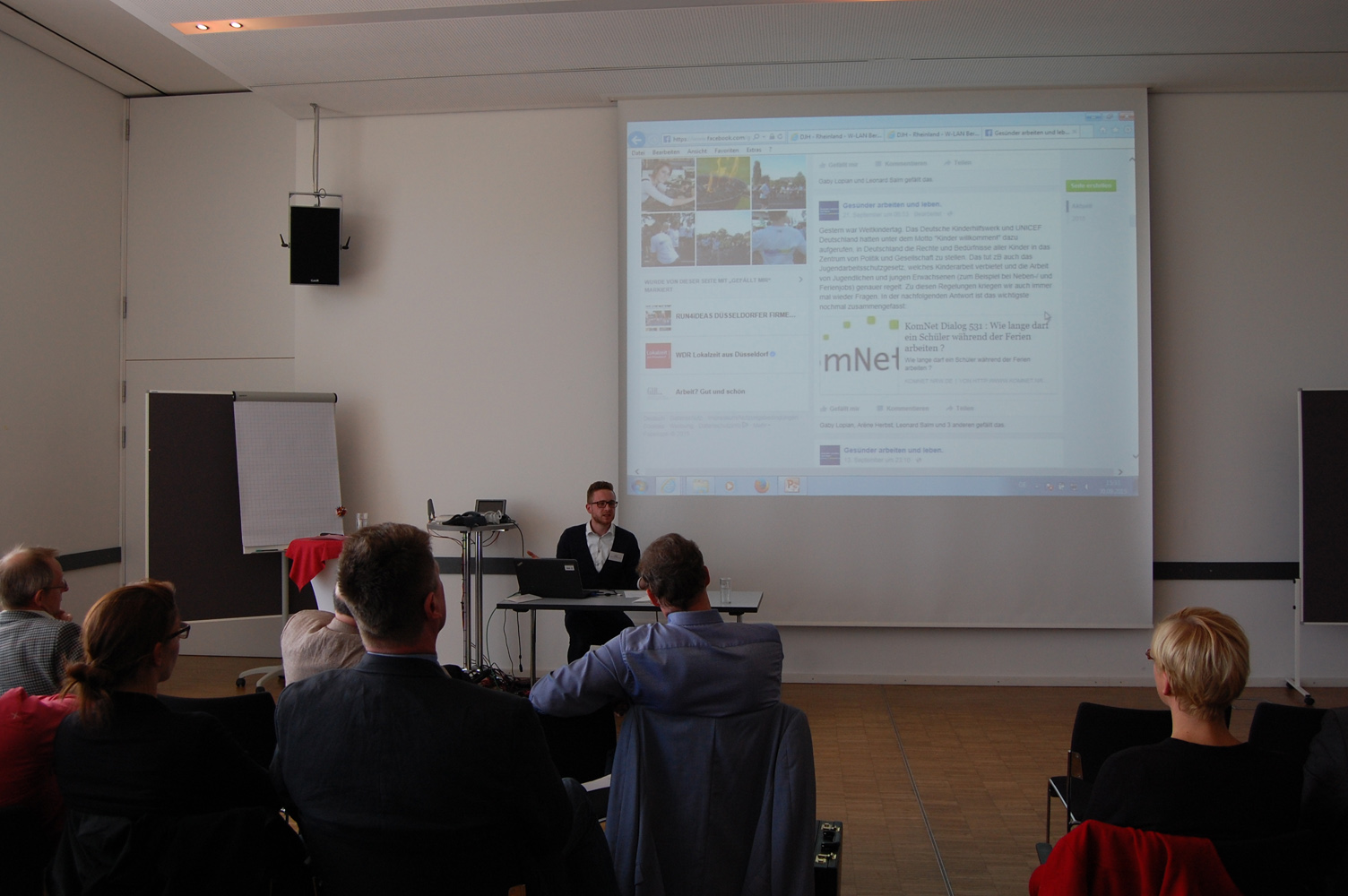 � und B.A. Leonard Salm vom LIA.nrw (Düsseldorf) präsentierte das KomNet Gesunde Arbeit bei Facebook.
